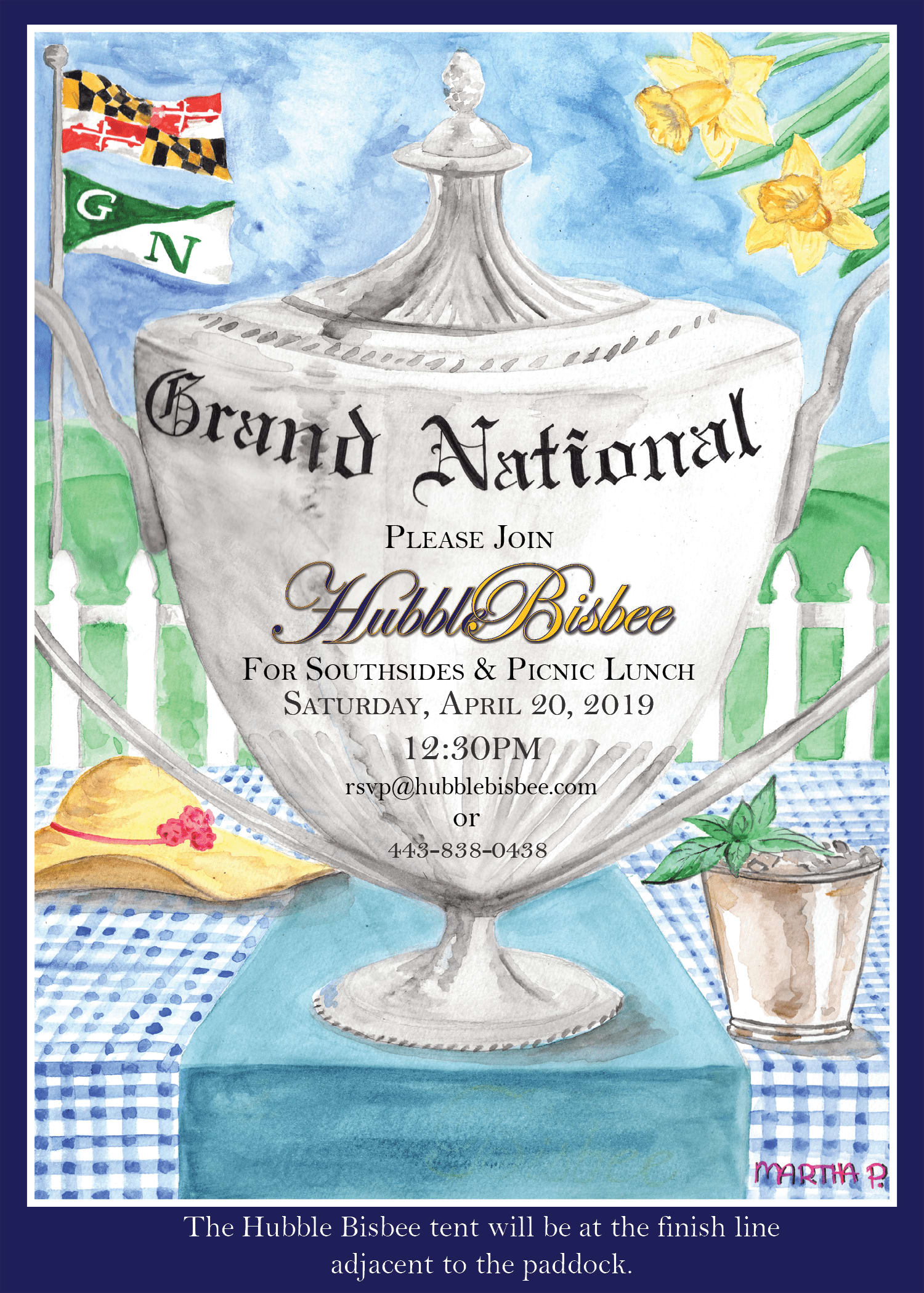 Always one of the highlights of the spring, this year’s Grand National Steeplechase will be held on Saturday, April 20, 2019. Celebrating its 117th running, this time-honored tradition comes to Maryland each second to last Saturday of each April to the spectacular Butler countryside in Northern Baltimore County. In a day full of sunshine, friends and fun, Hubble Bisbee is always thrilled to host a tent for guests right at the finish line, enjoying some of the best views of the day!