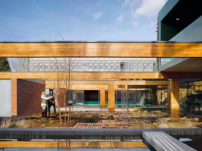 Jack Hosea, director at Threefold Architects, takes a similar approach. “Try and understand the horse as a client as much as the person as a client,” he says. Hosea is the brains behind the visually stunning Ladderstile House, in London’s Richmond. The property is on the site of what was once a grand country house and comes with historic, and now rare, “ride-out” rights, meaning its owners can ride their horses directly from their home into the adjoining Richmond Park.
