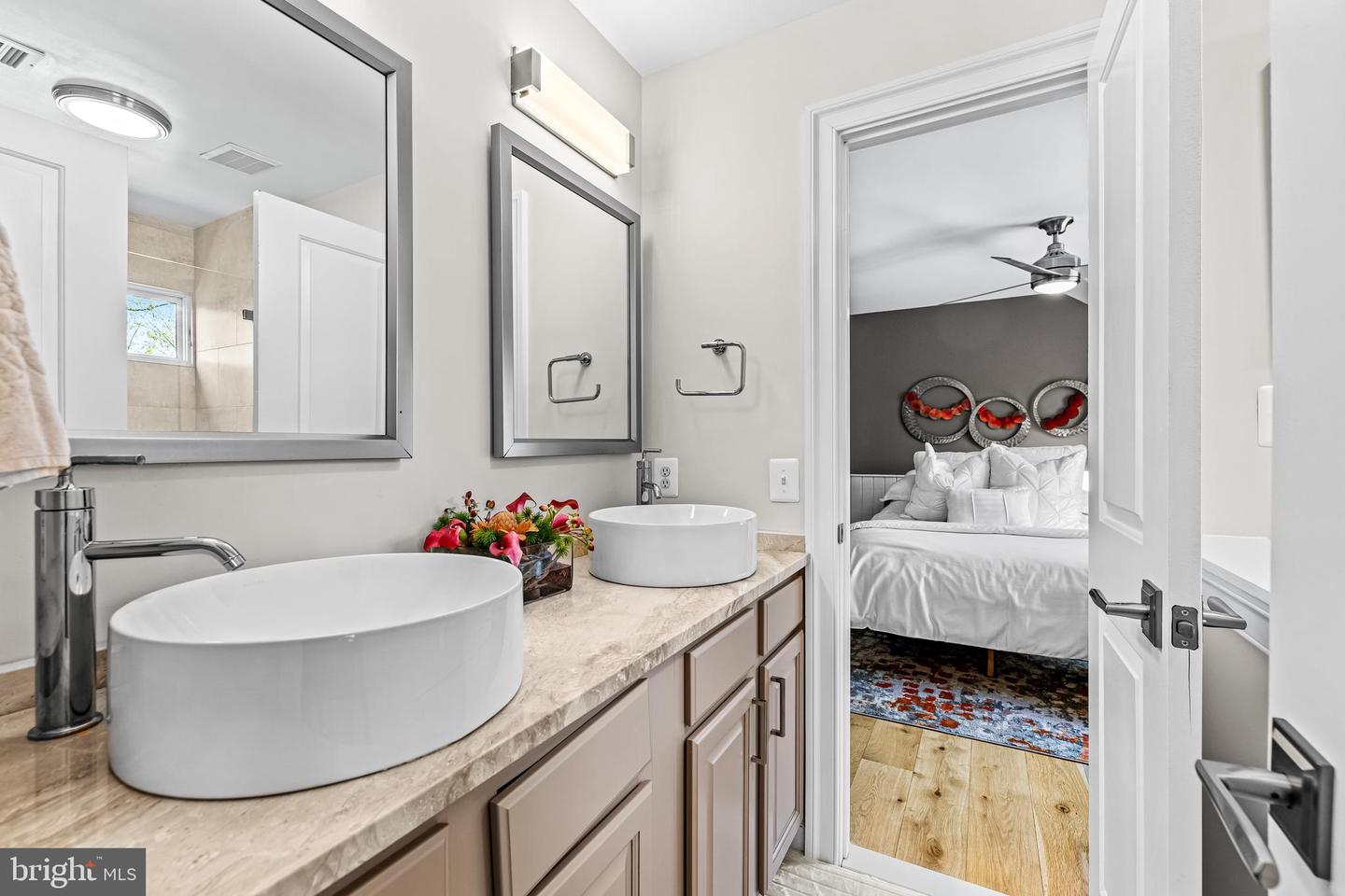 Throughout the home, Marvin windows and doors bring in abundant natural light, while all bathrooms have been stylishly updated with Kohler fixtures and designer tile. Subtle yet elegant technique wall finishes elevate the primary bedroom, powder room, and home office with soft neutral tones. A Sonos sound system on the main and lower levels, along with a hardwired ADT security system featuring 12 exterior cameras and a dedicated surveillance screen, add to the home's functionality and peace of mind. The fully finished lower level offers even more living space with a custom bar featuring natural stone tile, granite countertops, a beverage fridge, and dishwasher. This level also includes a media room, fifth bedroom, full bath, and a spacious bonus room perfect for arts and crafts or hobbies.