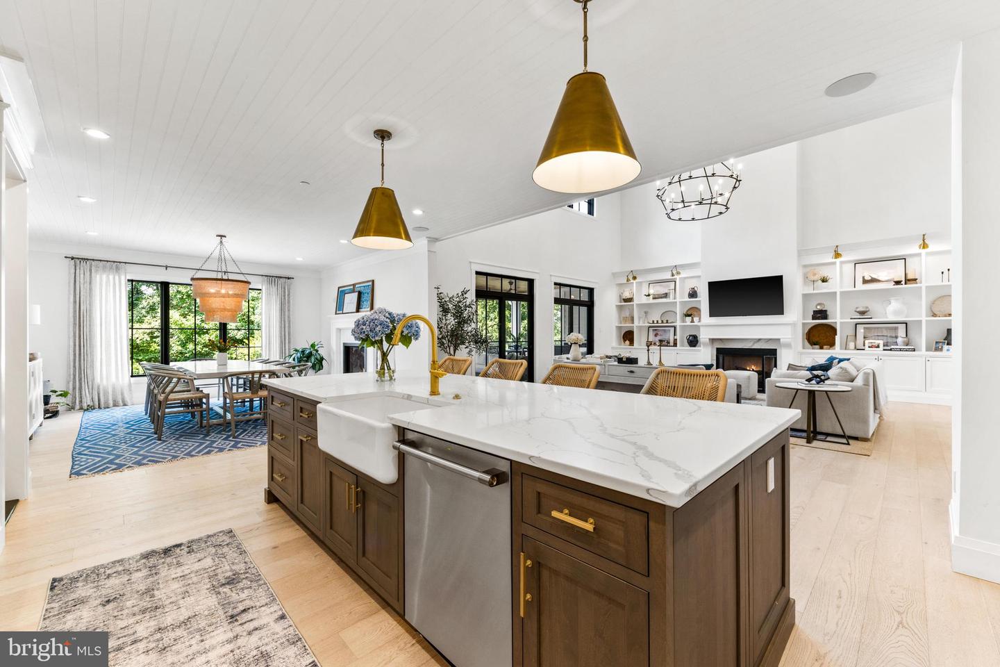The main home is entered through a custom walnut door that opens to a foyer & dramatic two story great room. The great room connects the kitchen, main living and dining room and the screened in outdoor living area and boasts not one, but 2 gas fireplaces. One of the fireplaces here is double sided and connects the dining room with the screened outdoor living space which overlooks the pool and pavilion. The world class kitchen captures every luxurious amenity including professional grade Wolf and Subzero appliances, an oversized island, oversized fridge & freezer, quartz countertops, a pot filler and a pinterest worthy walk-in prep kitchen complete with a second sink and dishwasher and a connected powder room. Retreat to the deluxe first floor primary bedroom suite which is spacious and serene and features a dramatic and soaring vaulted ceiling, a fabulous tile feature wall with a linear fireplace and ample seating space. The primary bedroom leads into the luxurious marble spa bath with "his and hers" double sinks and a separate make up vanity. An oversized marble walk-in shower and a soaking tub fit for a Queen and a separate private water closet complete the primary spa bath which leads into the envy inducing enormous shared custom closet complete with a huge island and quartz counters. Finally on the main level, you will find an office outfitted for 2 if desired, a magazine worthy laundry room, a mudroom area with cubbies to organize the whole family and another full bath off the mudroom area.