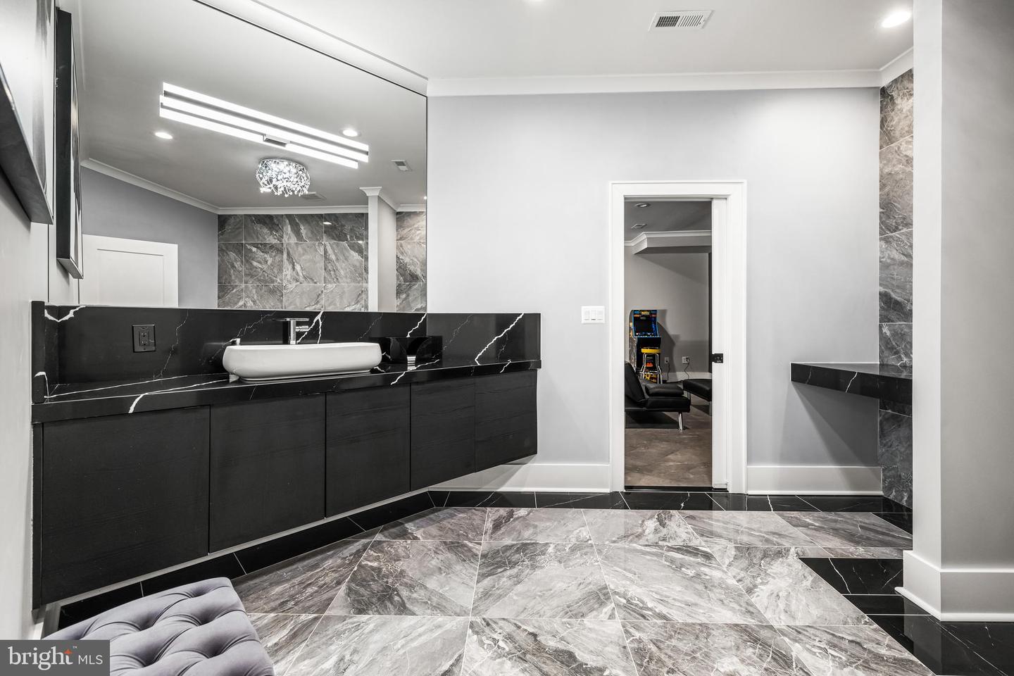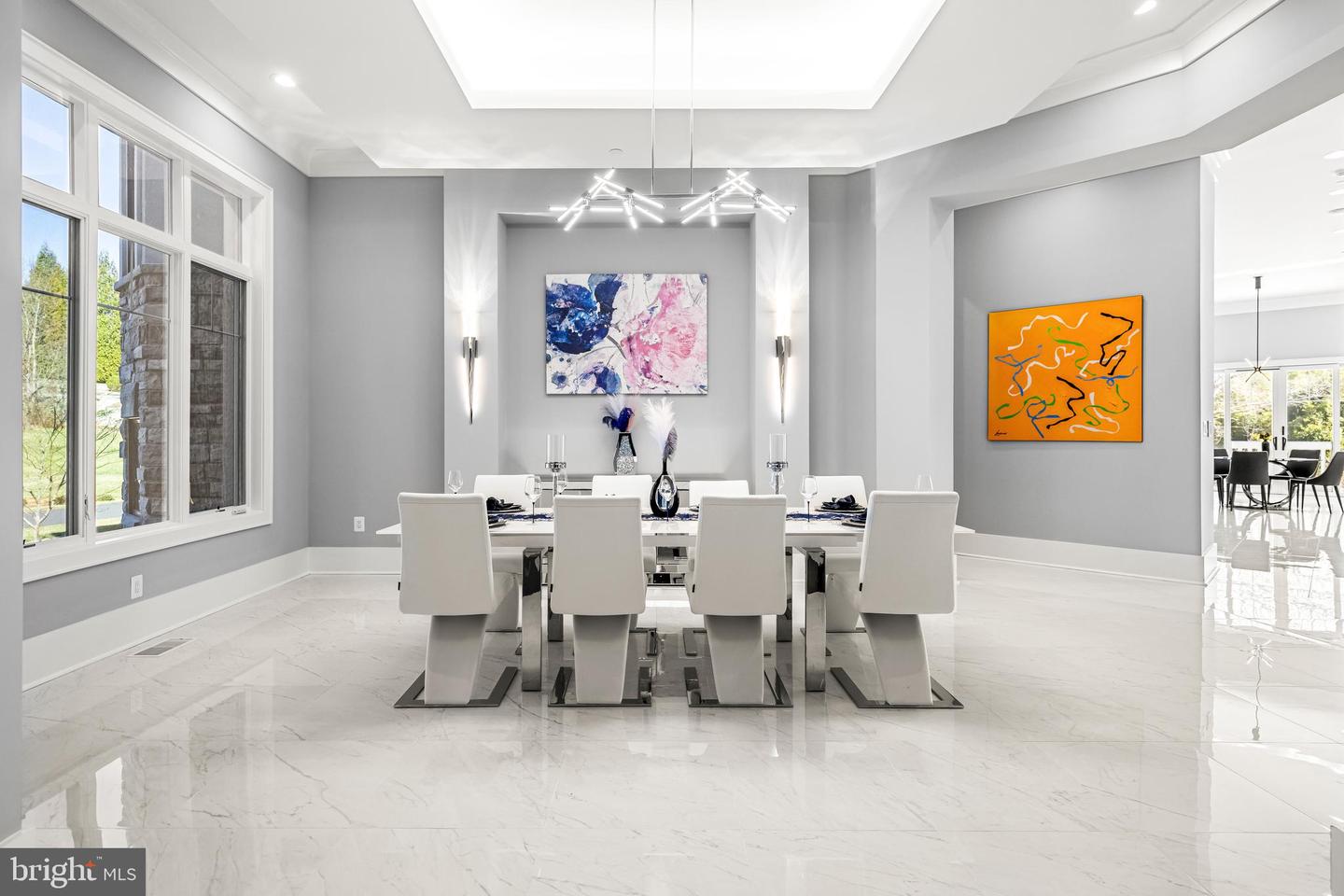 Unparalleled quality and craftsmanship is evident at once upon entering through the oversize double doors of this executive luxury home. Custom built by the Award Winning, Bethel Regency Homes in 2021 with 7 Bedrooms and 8/3 Baths. The completely finished 8-car capacity Garages are a car collector's dream. The athlete or fitness enthusiast will appreciate the Gym and sunken indoor Sport Court with upper level overlooks and full Bath. Marble finish high-polish porcelain tile floors throughout the main level, hardwood flooring in the upper level. Dramatic 2-story Foyer with columns and archway, Gallery Hall connecting most main level rooms, Office with circular window seating area, formal Living Room and Dining Room. The Family Room with coffered ceiling, fireplace and glass-enclosed Wine Room flows to the stunning custom gourmet Kitchen featuring a backlit onyx island counter. The staircase rises into a tower to the upper level where the luxurious Primary Suite is found with large Sitting Room with peninsula fireplace shared with the Primary Bedroom, 2 custom fitted Dressing Rooms and incredible Primary Bath. 3 additional en-suite Bedrooms and Laundry Room completes on the upper level. Hop on the elevator to find an expansive walk-out lower level that includes a Rec Room with wet bar, a Game Room, en-suite Bedroom, Bonus Room, Powder Room and full Bath. A saltwater in-ground pool with tremendous patios and pool decking is enclosed with a decorative black metal fence with walk-out access from the lower level and Sport Court. Truly a luxury home with resort-like amenities on a prime 5.13 acre lot.